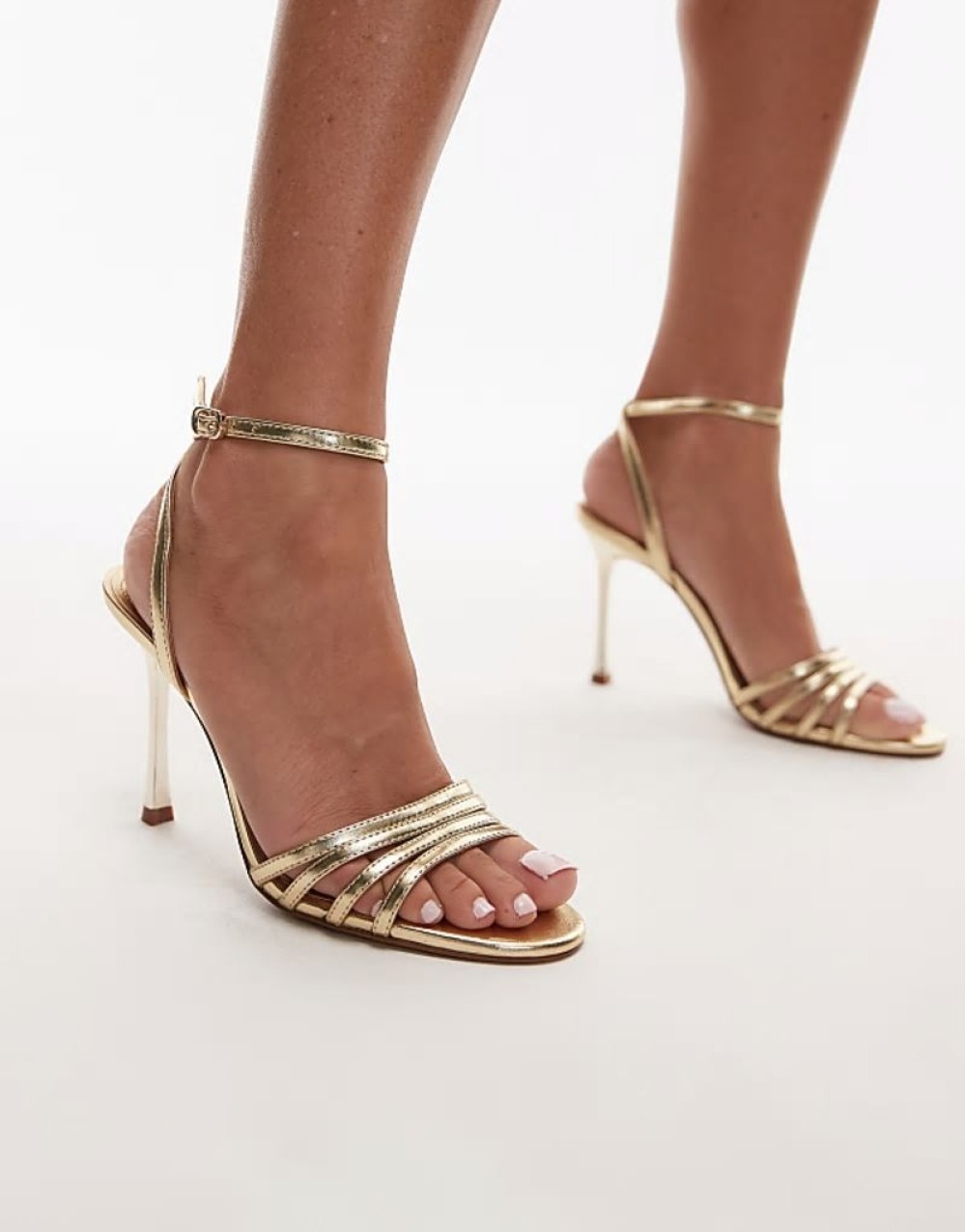 strappy heeled sandal in gold
