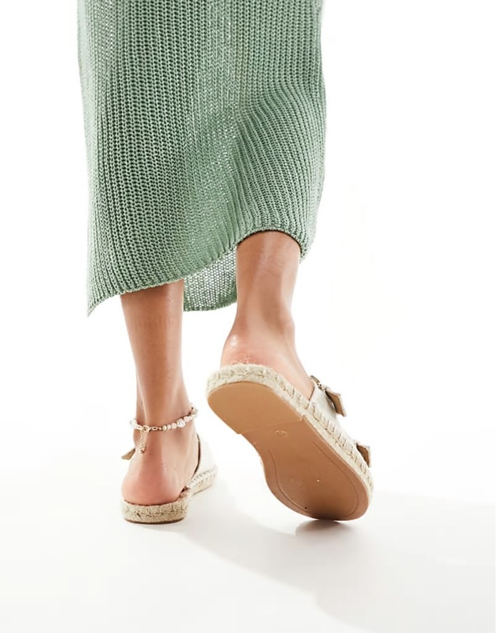 Wide Fit Jada double buckle espadrille sandals in natural linen