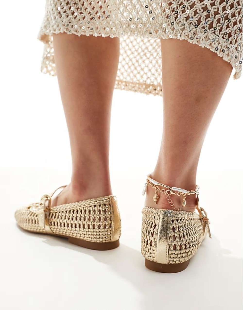 woven ballet flat in gold